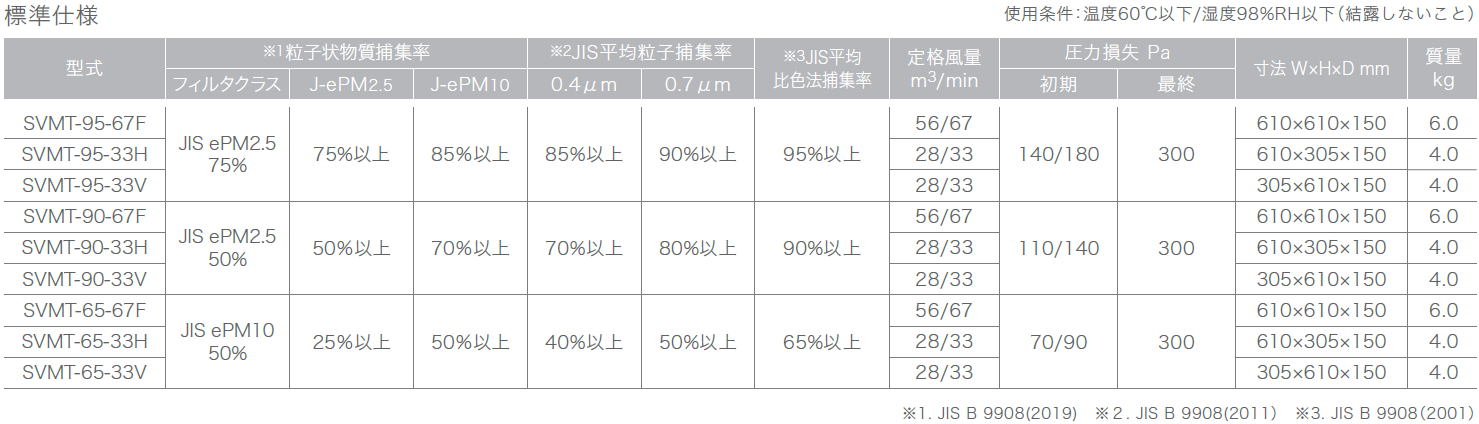 Ecoalpha™, フィロプリーツ® / 薄型設計で多風量処理を実現する低圧力損失ユニット型フィルタ。 製品に関するお問い合わせ 製品に関するお問い合わせはこちら 型式 SVMT 資料ダウンロード 環境配慮型エアフィルタ(Ecoalpha) グレード 中性能 導入場所 一般ビル・商業施設 一般工場施設 自動車関連 データセンター 半導体・電子工場 食品・飲料工場 物流・倉庫 病院・製薬工場 駅舎・地下鉄 美術館・博物館・図書館 対策内容 環境対策 種別 フィルタ 特長・強み 低圧力損失設計:シングルプリーツ構造により、通気抵抗を抑えながら高効率な集じんが可能です。 多風量・薄型構造:150mm厚のアルミ枠で多風量処理に対応し、省スペース設置が可能です。 長寿命・軽量設計:超極細ポリプロピレン繊維により、軽量かつ長期間の安定運用が可能です。 標準仕様 標準材質 性能グラフ