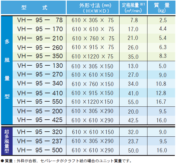 / 多風量処理に対応した準クリーン環境向け準HEPAフィルタ。 製品に関するお問い合わせ 製品に関するお問い合わせはこちら 型式 VH-95 資料ダウンロード HEPA/ULPA/準HEPAフィルタ グレード 高性能 導入場所 一般工場施設 食品・飲料工場 病院・製薬工場 対策内容 一般空調 種別 フィルタ 特長・強み 準HEPA性能:0.3μm粒子に対して95%以上の捕集率を保証。 多風量対応:標準型よりも多くの風量を効率的に処理可能。 準クリーンルーム対応:空調機器や準クリーンルームのメインフィルタに最適。 型式 性能グラフ 標準仕様 ユニット仕様